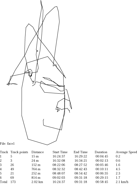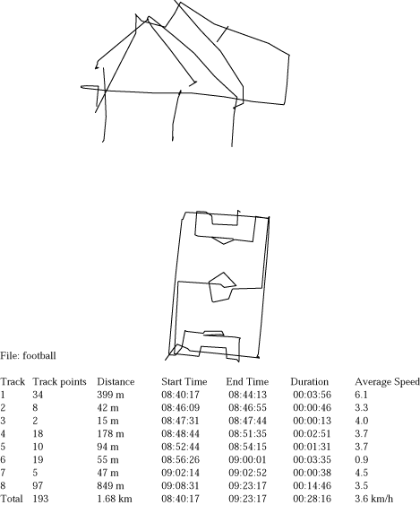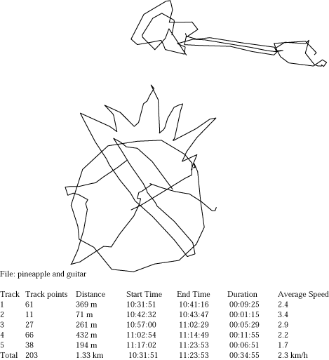 With all GPS drawings displayed together some of the more prominent features of the field are revealed, such as the gate, the pond, and the cat.